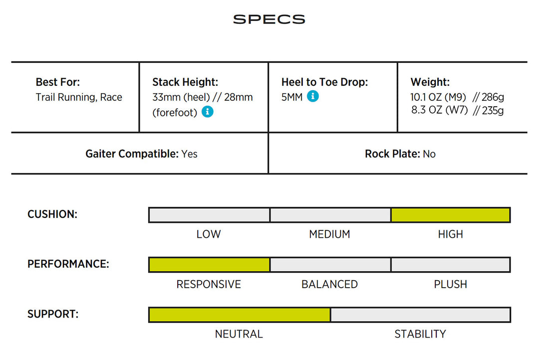 Proprietary midsole compound which is springier than EVA and offers more rebound over the life of the shoe.